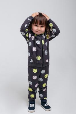 Куртка с капюшоном и удобными карманами. В капюшоне подклад контрастного цвета. Сшита из петельчатого футера с набивными теннисными мячиками. Застёгивается на молнию, предусмотрена защита подбородка и шеи. Мягкие эластичные пояс и манжеты.Дополнительно
