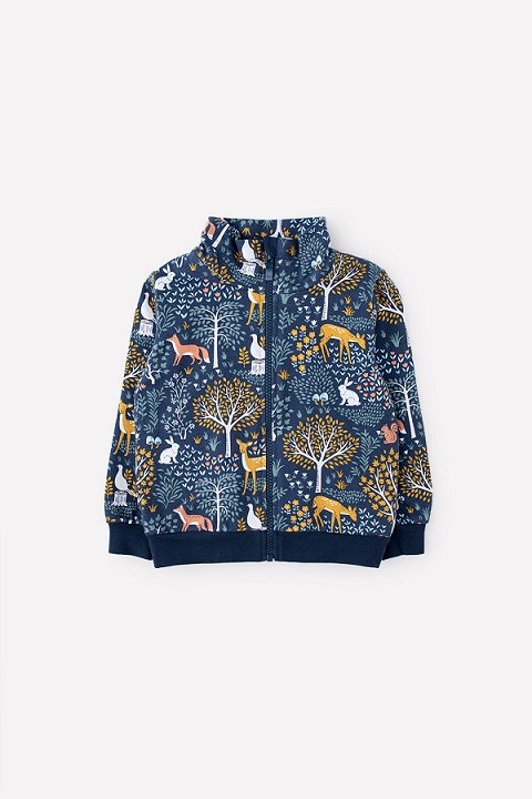 Тёплая куртка с начёсом. Застёгивается на витую молнию. Предусмотрен ограничитель для защиты шеи и подбородка. Высокий воротник с подкладом на утяжке из ленты. По бокам два кармана. На рукавах - эластичные манжеты, внизу - мягкий пояс. Украшена набивным рисунком.Дополнительно