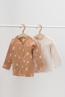Кофточки в упаковке в количестве 2 штуки для новорожденных из мягкого, эластичного трикотажа, произведенного из натурального хлопка. Изделие застегивается на кнопки. Оригинальная набивка выполнена из стойких, гипоаллергенных текстильных красителей. Все трикотажные полотна производятся в соответсвии с нормами Швейцарского сертификата ЭкоТекс.Дополнительно