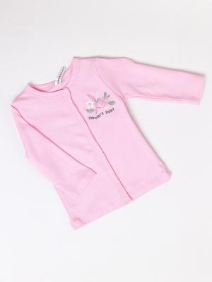 Кофточка розовая с длинным рукавом для новорожденных. Кофточка для девочек отшита из интерлока - 100% хлопка, благодаря чему кожа ребенка "дышит" и не раздражается. Прочная ткань сохраняет форму даже после многочисленных стирок. Изделие застегивается на кнопки по центру, а с одной стороны имеет красивую вышивку с цветочками и надписями.Дополнительно