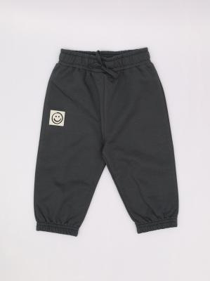 Брюки для мальчика из мягкого трикотажа. Пояс и низ брюк на резинке. Шнурок декоративный из экстрафорной тесьмы. На правой половинке декоративная жаккардовая нашивка в виде смайлика.Дополнительно