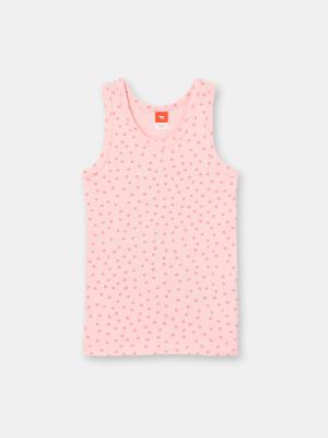Майка с плечом из набивного полотна. Горловина и проймы обработаны окантовкой из основного полотна.Дополнительно