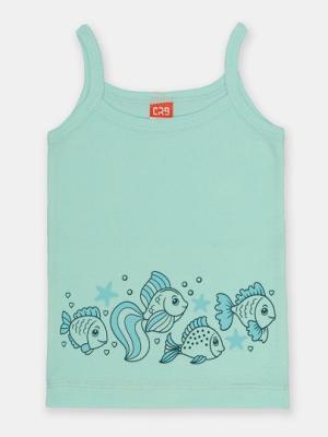 Гладкокрашенная майка на бретелях из основного полотна. Срезы пройм и горловины окантованы бейкой из основного плотна. Перед майки оформлен шелкографией.Дополнительно