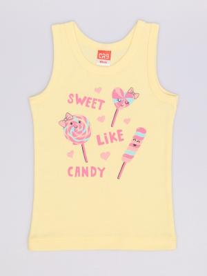 Гладкокрашенная майка с плечом. Горловина и проймы обработаны окантовкой из основного полотна. Перед оформлен шелкографией.Дополнительно