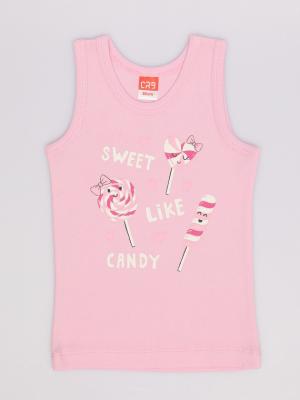 Гладкокрашенная майка с плечом. Горловина и проймы обработаны окантовкой из основного полотна. Перед оформлен шелкографией.Дополнительно