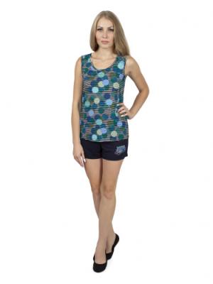 Б2386-5608 иссиня-черный+разноцветный горох на полосе, Комплект (топ+шорты)