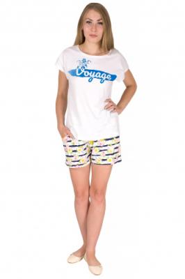 Б2382-5532 яблоневый цвет на полосе+белый, Комплект (футболка+шорты)