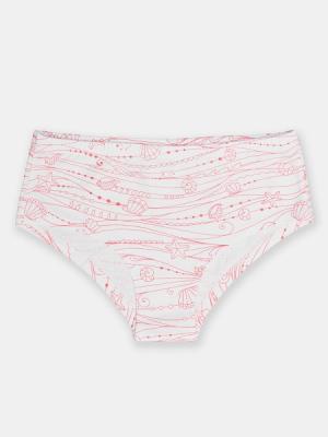 Трусы из набивного полотна. Верх трусов и проймы ножек обработаны плоским швом вподгибку. По верху одновременно проложена резинка.Дополнительно