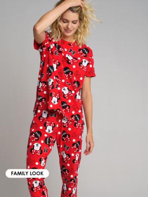 Пижама взрослого размера: может составить family look c детским вариантом пижамы аналогичного дизайна. Размер изделия на фото - L, рост модели 180. Трикотажная футболка и брюки. Эластичный пояс с тесьмой позволяет легко надевать изделие и утягивать до комфортной посадки.Дополнительно
