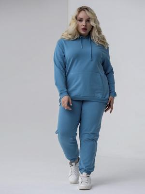 Брюки с широкой резинкой по ножкам. Пояс отрезной из кашкорсе с эластаном. В поясе обработана кулиска, кругловязаный шнур с пластиковыми наконечниками вставлен в петли. Карманы в боковом шве с отстрочкой по входу в карман. У левого кармана выполнена небольшая вышивка.Дополнительно