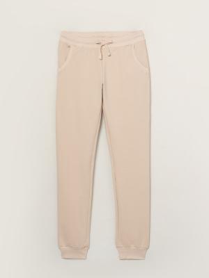 Брюки слегка зауженные к низу, на манжете. Пояс и манжеты из кашкорсе с эластаном. В поясе обработана кулиска, кругловязаный шнур, с застроченными концами, вставлен в петли. Карманы закругленные, вход в карман обработан притачной обтачкой из кашкорсе с эластаном. Отстрочка по шву притачивания.Дополнительно