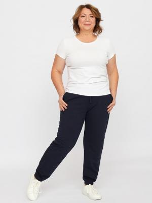 Брюки на широкой резинке по ножкам. Пояс отрезной из основного полотна, по поясу выполнена кулиска, шнур вставлен в петли. Карманы наклонные, с отстрочкой по входу в карман. Ниже кармана с левой стороны нашит металлический лэйбл со стразом.Дополнительно