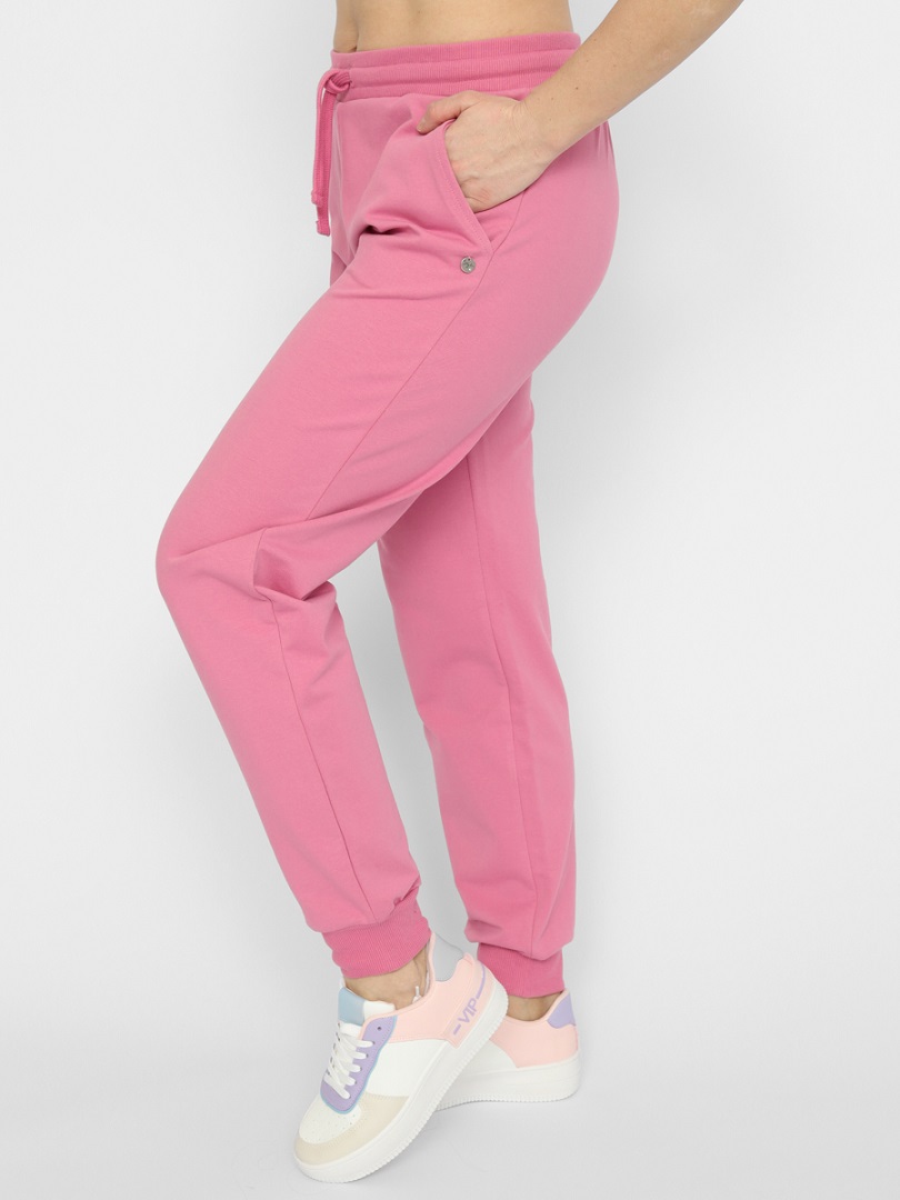 Брюки с карманами, притачным поясом и манжетами. Пояс и манжеты выполнены из кашкорсе с эластаном. В пояс вставлена резинка и функциональный шнур. На левой передней половинке под входом в карман - декоративный металлический лейбл.Дополнительно