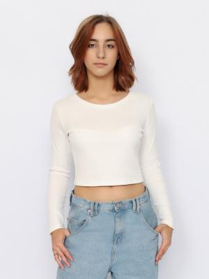 Укороченный молодежный джемпер с длинными рукавами из эластичного полотна в вертикальный рубчик.Дополнительно