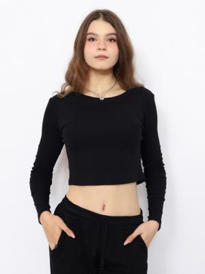 Укороченный молодежный джемпер с длинными рукавами из эластичного полотна в вертикальный рубчик.Дополнительно