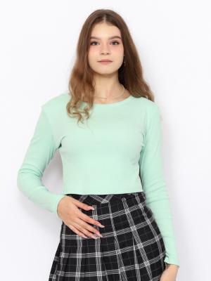 Укороченный молодежный джемпер с длинными рукавами из эластичного полотна в вертикальный рубчик.Дополнительно