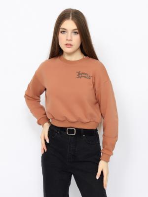 Укороченный джемпер для девушки с длинными рукавами и принтом (никогда не оглядывайся назад) Рукава с манжетами по низу. Нижние срезы переда и спинки оформлены притачным поясом. Пояс, манжеты и воротник сделаны из полотна с эластаном.Дополнительно