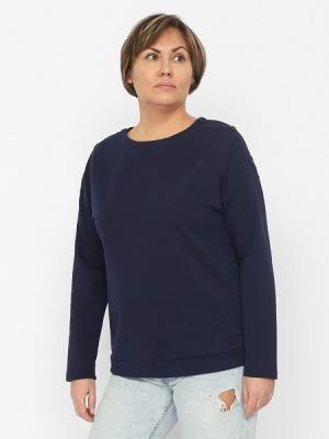 Джемпер свободного силуэта с длинным рукавом на спущенном плече. Внутренний шов горловины по спинке закрыт экстрафорной лентой. Горловина мягкая "лодочка" обработана обтачкой с широкой отстрочкой, переходящей в плечевые швы. По плечевым швам выполнена имитация застежки на крупные пуговицы. Пояс притачной из кашкорсе с эластаном.Дополнительно
