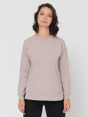 Джемпер свободного силуэта с длинным рукавом на спущенном плече. Внутренний шов горловины по спинке закрыт экстрафорной лентой. Манжеты и горловина выполнены из кашкорсе с эластаном. В боковых швах, переходящих на полочку, высокие разрезы. По низу джемпера притачная обтачка из основного полотна. Спинка длиннее полочки. На полочке внизу нашит металлический лэйбл со стразом.Дополнительно
