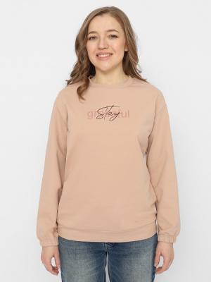 Джемпер с длинными рукавами, со спущенным плечом. Горловина обработана притачной бейкой из кашкорсе с эластаном. Нижние срезы рукавов обработаны швом вподгибку с предварительно притачанной резинкой. Перед джемпера декорирован принтом.Дополнительно