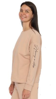 Джемпер женский из футера, рукава с манжетами. Воротник из эластичной рибаны. На рукаве декоративный принт (Гармония в природе...).Дополнительно
