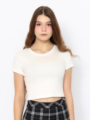 Укороченная прилегающая футболка с короткими рукавами из эластичного полотна в вертикальный рубчик.Дополнительно