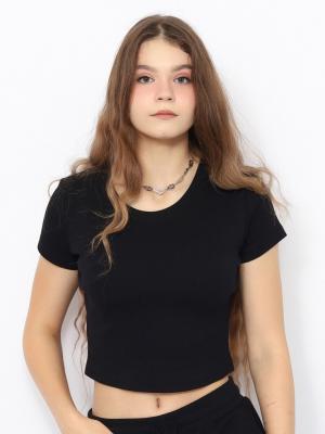 Укороченная прилегающая футболка с короткими рукавами из эластичного полотна в вертикальный рубчик.Дополнительно