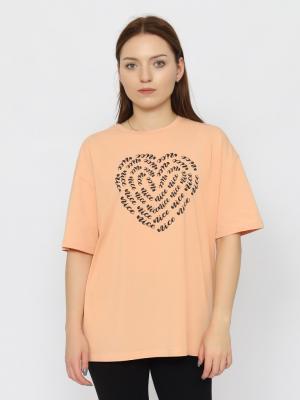Футболка оверсайз длиной по линию бедер. Рукав до локтя. Круглая горловина обработана узкой притачной обтачкой из рибаны с эластаном. Полочка декорирована принтом. "cердце, милый".Дополнительно
