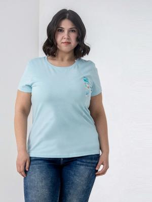 Футболка слегка полуприлегающего силуэта, длиной до бедер. Короткий рукав. Круглая горловина обработана узкой притачной обтачкой из основного полотна. По горловине отстрочка. По ростку проложен усилитель из экстрафорной ленты. С изнаночной стороны спинки выполнена печать-размерник. На полочке с левой стороны выполнена шелкография в комбинированной технике, растровая печать с применением краски puff.Дополнительно