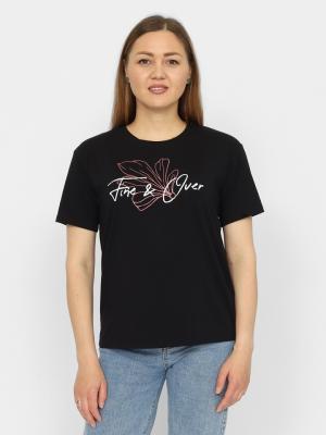 Футболка женская из кулирной глади. На полочке декоративный принт c глиттером (прекрасно и закончено).Дополнительно