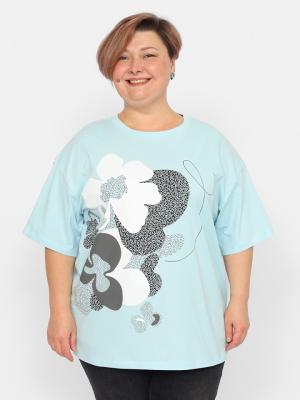 Футболка женская оверсайз из кулирной глади. С рукавом до локтя. Воротник из эластичной рибаны. На полочке декоративный принт.Дополнительно