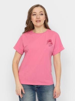 Футболка с короткими цельнокроенными рукавами с манжетами. Горловина круглая, обработана притачной бейкой из рибаны с эластаном. Перед футболки декорирован небольшим принтом.Дополнительно