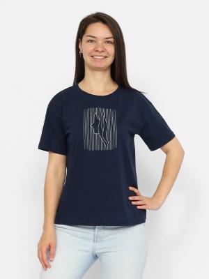 Футболка женская из кулирной глади. Воротник из эластичной рибаны. На полочке декоративный принт.Дополнительно