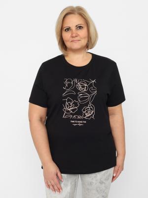 Футболка с короткими рукавами. Горловина круглая, обработана притачной бейкой из основного полотна. Перед футболки декорирован принтом.Дополнительно
