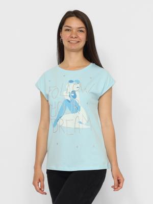 Футболка женская из кулирной глади. С цельнокройным рукавом. Воротник из эластичной рибаны. На полочке декоративный принт с серебром (следуй за своей мечтой).Дополнительно