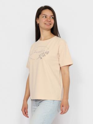 Футболка женская из кулирной глади. На полочке декоративный принт (немногочисленный).Дополнительно