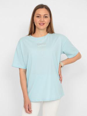 Футболка женская оверсайз из кулирной глади. С рукавом до локтя. Воротник из эластичной рибаны. На полочке декоративный принт (расцветайте с изяществом). Разрезы по бокам.Дополнительно