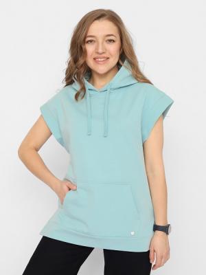 Жилет с капюшоном. По краю капюшона вставлен функциональный шнур. Плечо спущенное. Спинка удлинённая. В нижней части боковых швов обработаны разрезы. Проймы обработаны притачными планками, а низ спинки и переда - притачным поясом из основного полотна. Спереди - накладной карман "кенгуру". В левом нижнем углу кармана - декоративный металлический лейбл.Дополнительно