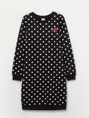Платье слегка полуприлегающего силуэта, длиной выше колена. По низу платья притачной пояс. Рукав длинный, на манжете. Круглая горловина обработана притачной обтачкой из кашкорсе с эластаном. По ростку проложен усилитель из экстрафорной ленты. С изнаночной стороны спинки выполнена печать-размерник. Шелкография с левой стороны полочки выполнена в технике "высокая база" (выглядит объемной). Манжеты и пояс из кашкорсе с эластаном.Дополнительно