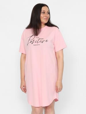 Ночная сорочка, домашнее платье, туника для женщины оверсайз с коротким рукавом, средней длины и свободного кроя, подходит к фигуре любого типа. Стильная, модная, туника для женщины выполнена из 100% органического хлопка. Легкая и дышащая текстура материала подарит комфортные ощущения. Перед декорирован принтом (надпись: Становись позитивным).Дополнительно