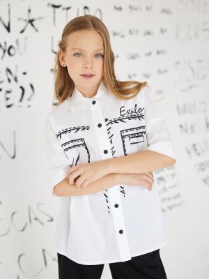 Удлиненная свободная модель с коротким рукавом. Классическая по фасону рубашка, с мультяшным граффическим принтом. Застежка на пуговицы, отложной воротник с застежкой под горло. Выполнена из плотной качественной ткани, которая проста в уходе, хорошо держит форму, идеальна для повседневной носки на каждый день.Дополнительно