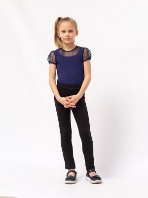 Джемпер для девочки с короткими рукавами и полукруглой кокеткой переда из сетки с рисунком. Горловина круглая, окантована бейкой из основного полотна. В верхней части спинки обработана застежка "капелька". Рукава "фонарики" из сетки с рисунком. Нижние срезы рукавов окантованы бейкой из основного полотна.Дополнительно