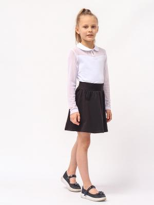 Джемпер с длинными рукавами и отложным воротником из основного полотна. Перед джемпера с фигурной кокеткой, в верхней части которой обработана застека "капелька". Рукава и кокетка выполнены из сетки с рисунком.Дополнительно