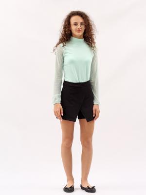 Водолазка для девочки с воротником-стойкой. Рукава длинные, выполнены из сетки с рисунком. Нижние срезы рукавов окантованы бейкой.Дополнительно