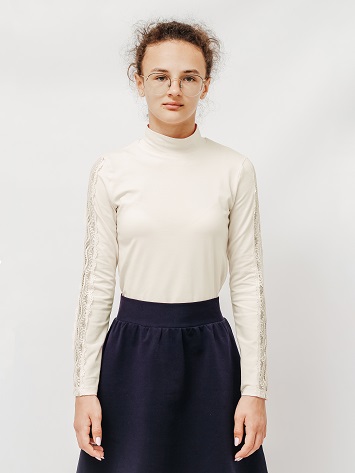Водолазка для девочки длинными рукавами и воротником-стойкой. Рукава со вставками из эластичного кружева.Дополнительно