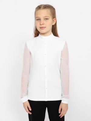 Водолазка для девочки с длинными рукавами и воротником-стойкой. Рукава из сетки с манжетами из кулирки. Полочка с иммитацией застежки на пуговицы.Дополнительно