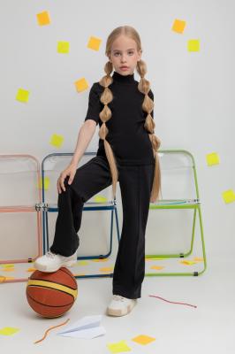 Водолазка для девочки с коротким рукавом и воротником-стойкой в рубчик. Мягкий материал изделия приятен к телу и хорошо тянется. Все трикотажные изделия производятся в соответствии с нормами швейцарского сертификата ЭкоТекс.Дополнительно