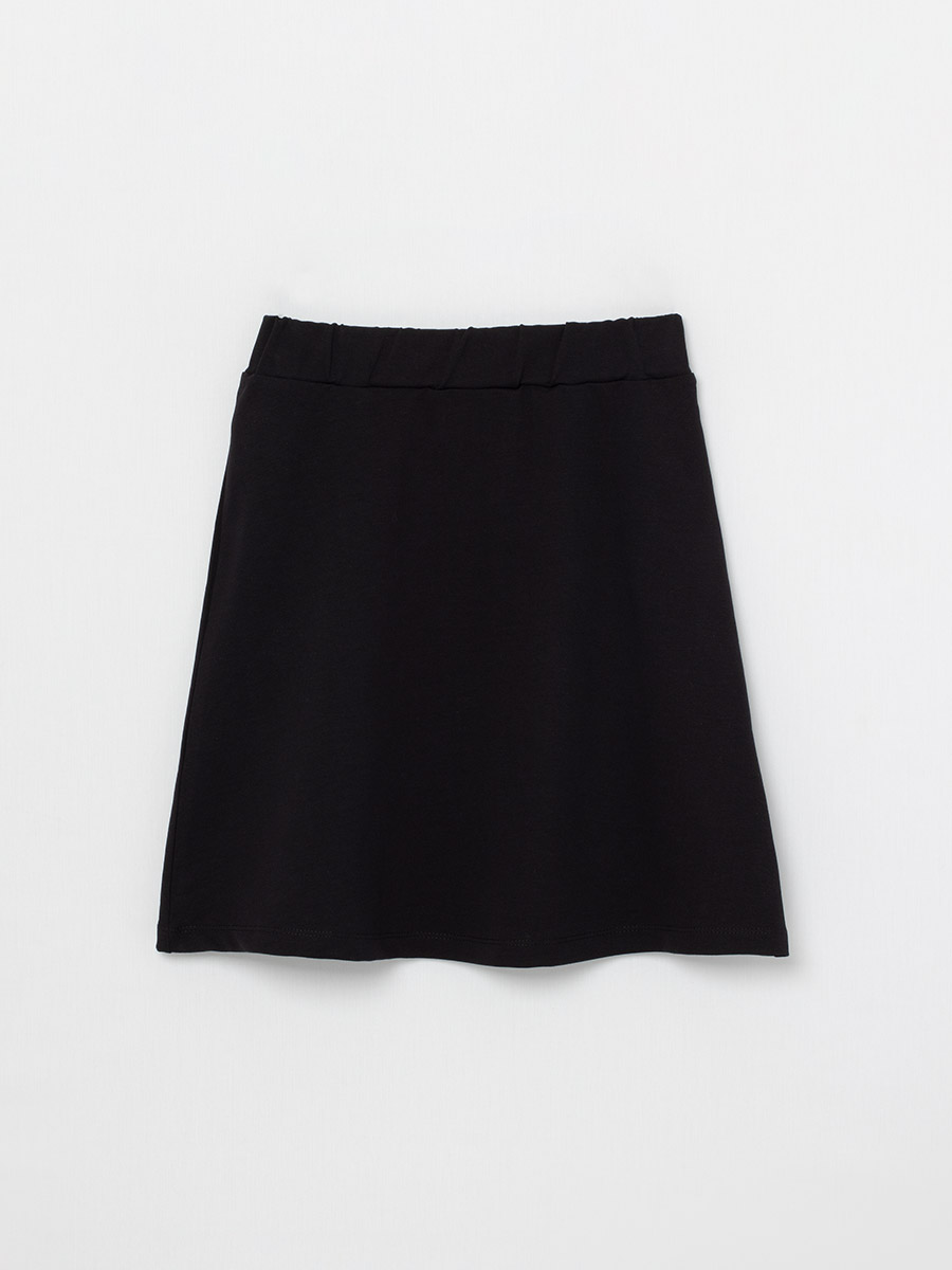 Юбка для девочки А-силуэта с притачным поясом из основного полотна. В пояс вставлена резинка.Дополнительно