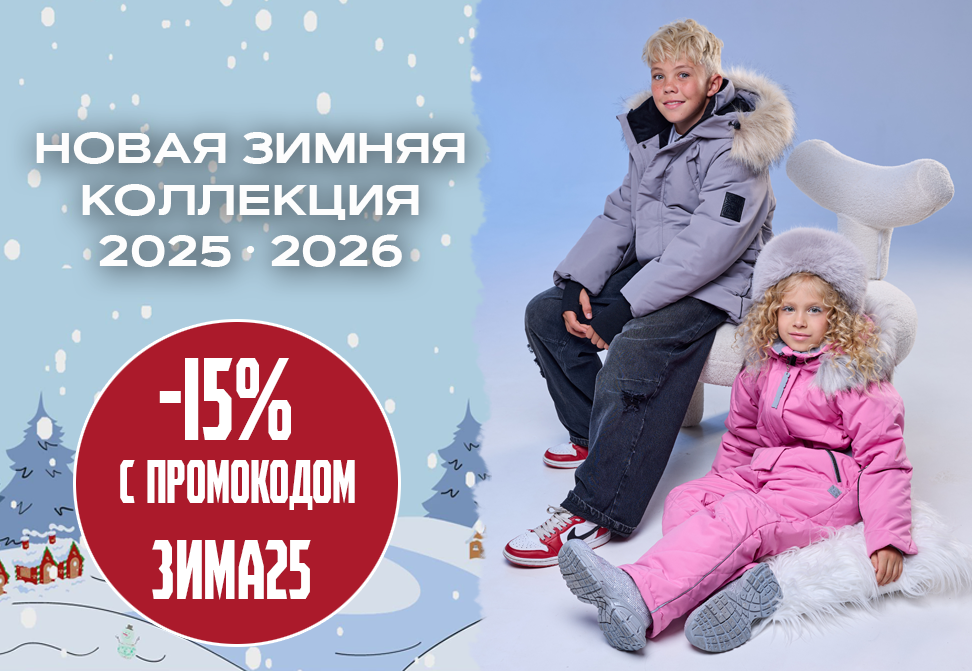 Позаботьтесь о зимних приключениях заранее! Перейдите в каталог и соберите идеальный комплект для вашего ребенка. А чтобы сборы были приятнее, дарим вам скидку 15% на всю зимнюю коллекцию по промокоду: ЗИМА25